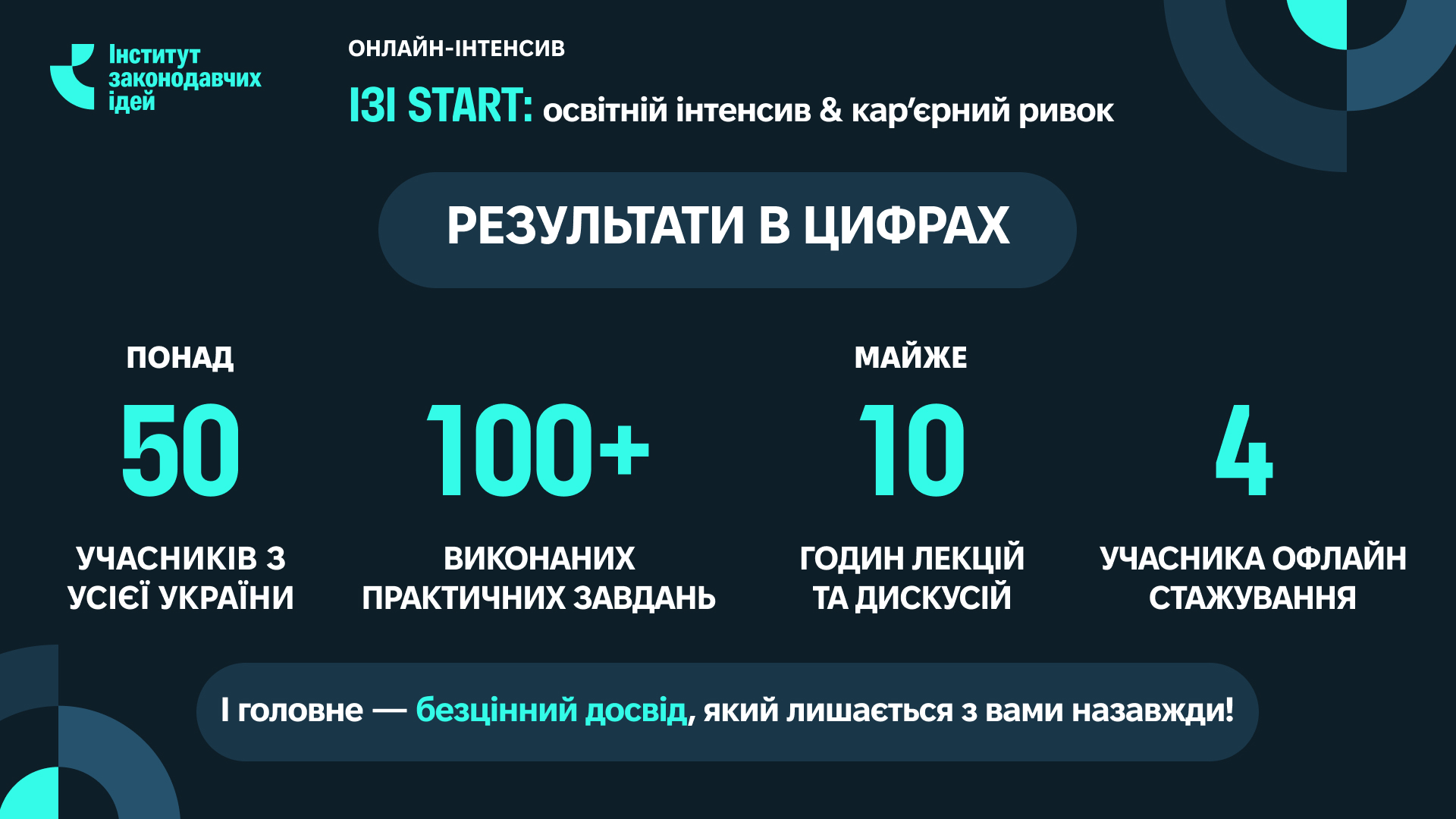 Інститут законодавчих ідей продовжуватиме реалізовувати освітні програми та стажування. Слідкуйте за подальшими анонсами — попереду нові ініціативи та можливості для професійного зростання.